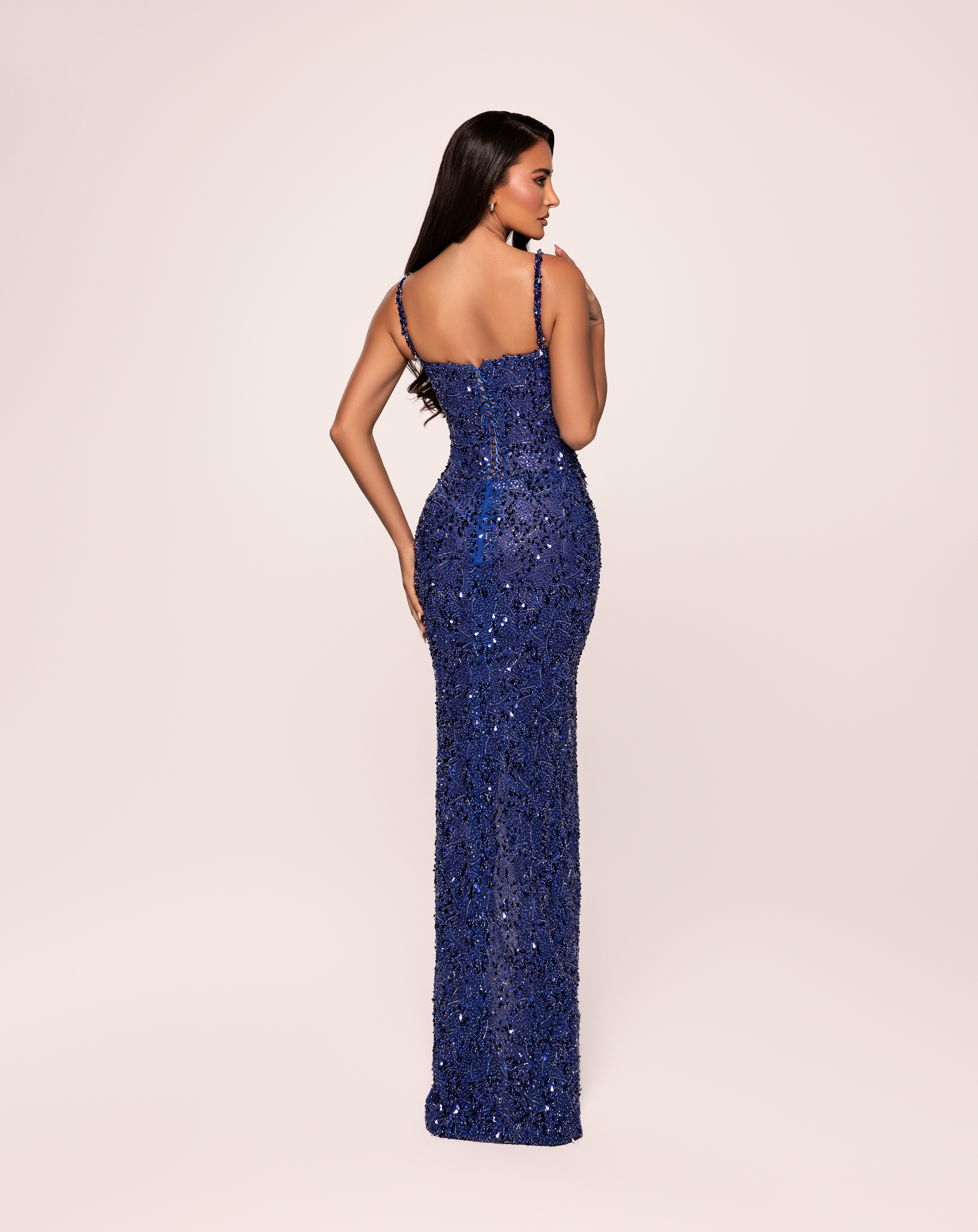 Bold royal blue color with shimmering bead and sequin detailing