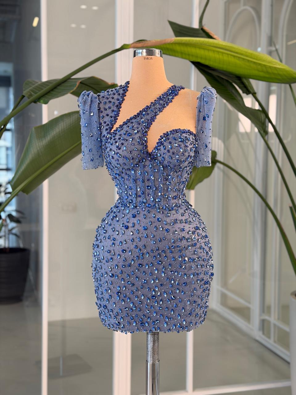 - Fully hand-beaded with periwinkle blue crystals for a soft, shimmering finish