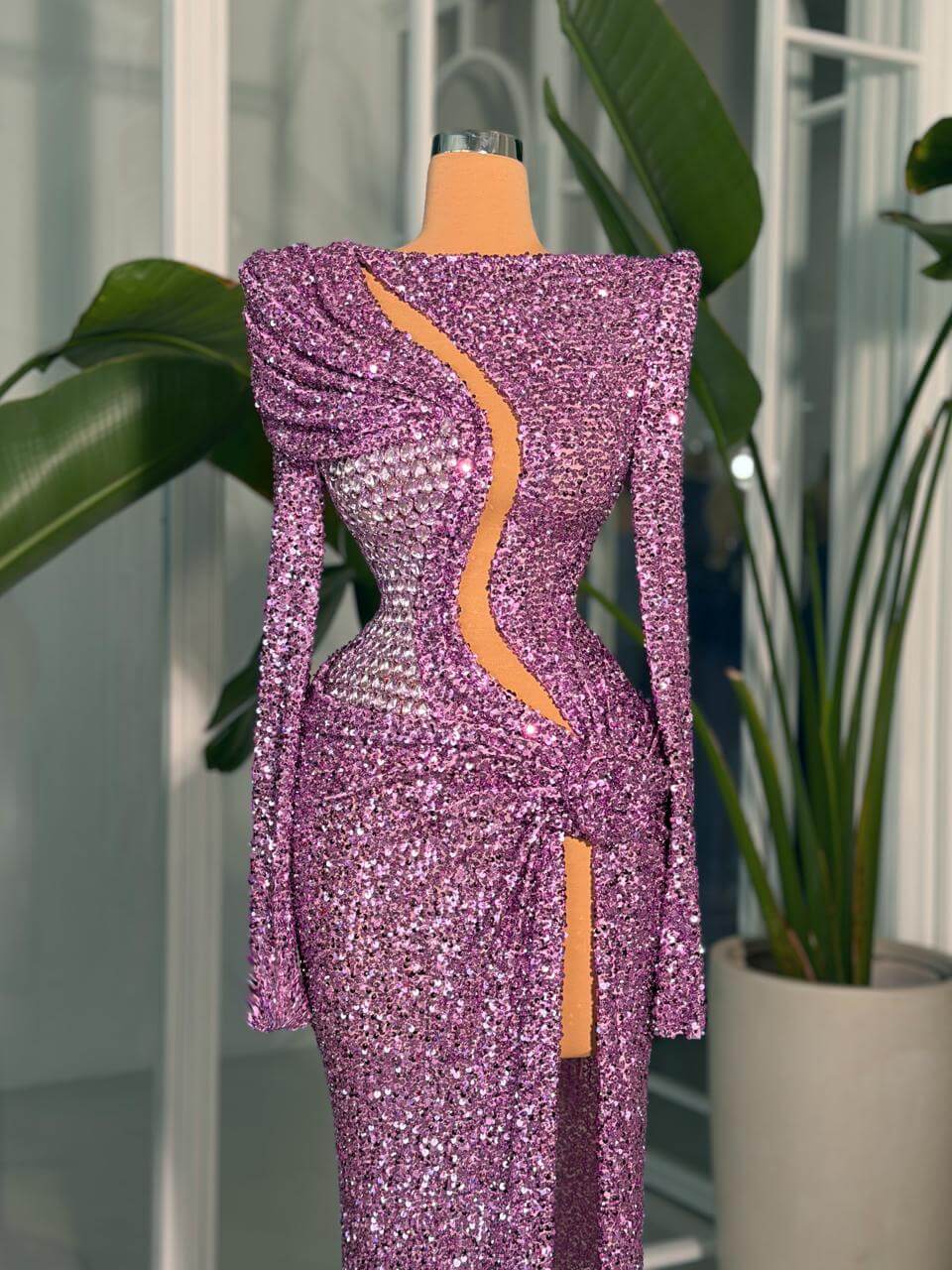 - Elegant gold-tone cutout detailing along bodice and thigh