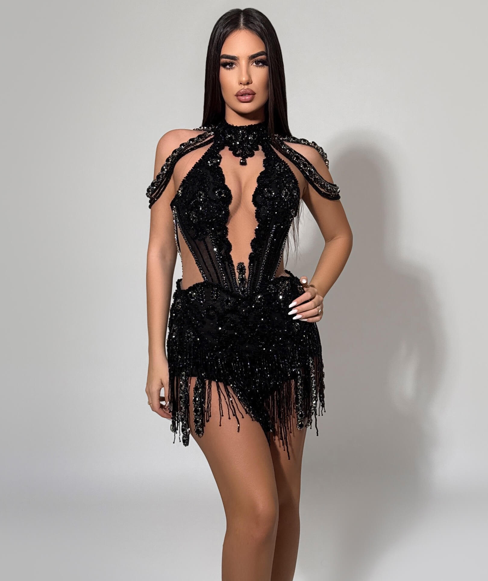 • Cascading fringe detailing adds dramatic movement and texture, perfect for nightlife, performances, and making an unforgettable entrance