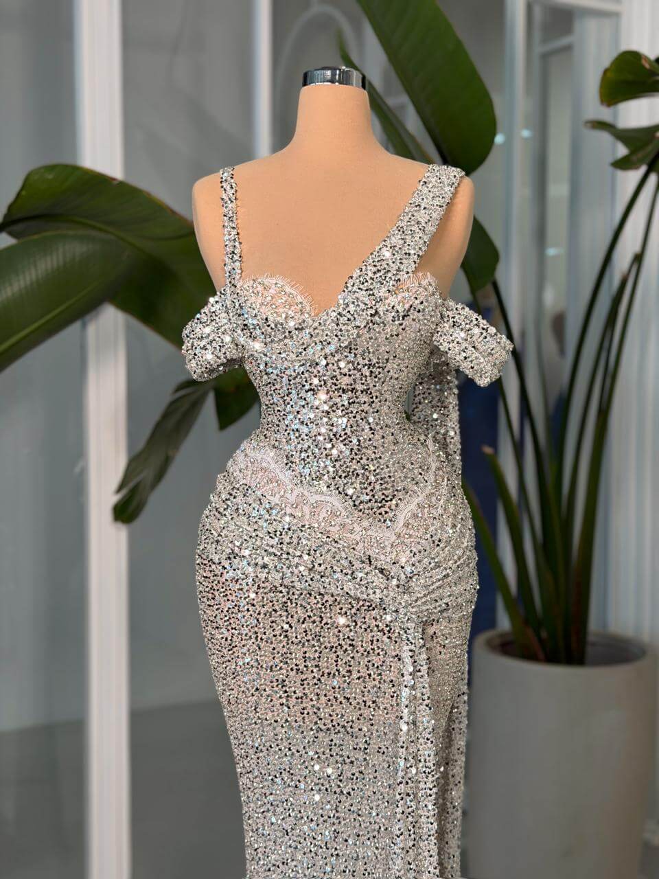 - Fully embellished with premium silver sequins and crystals