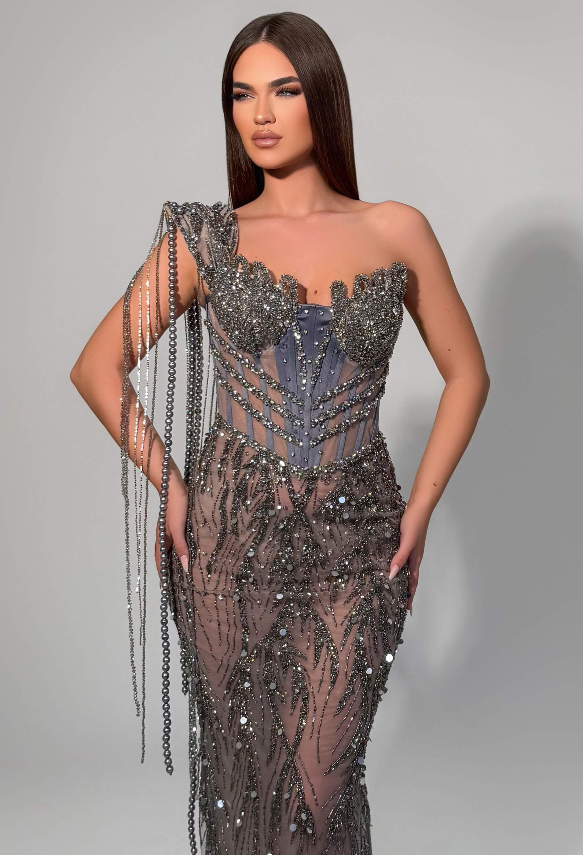 • Long embellished gown
