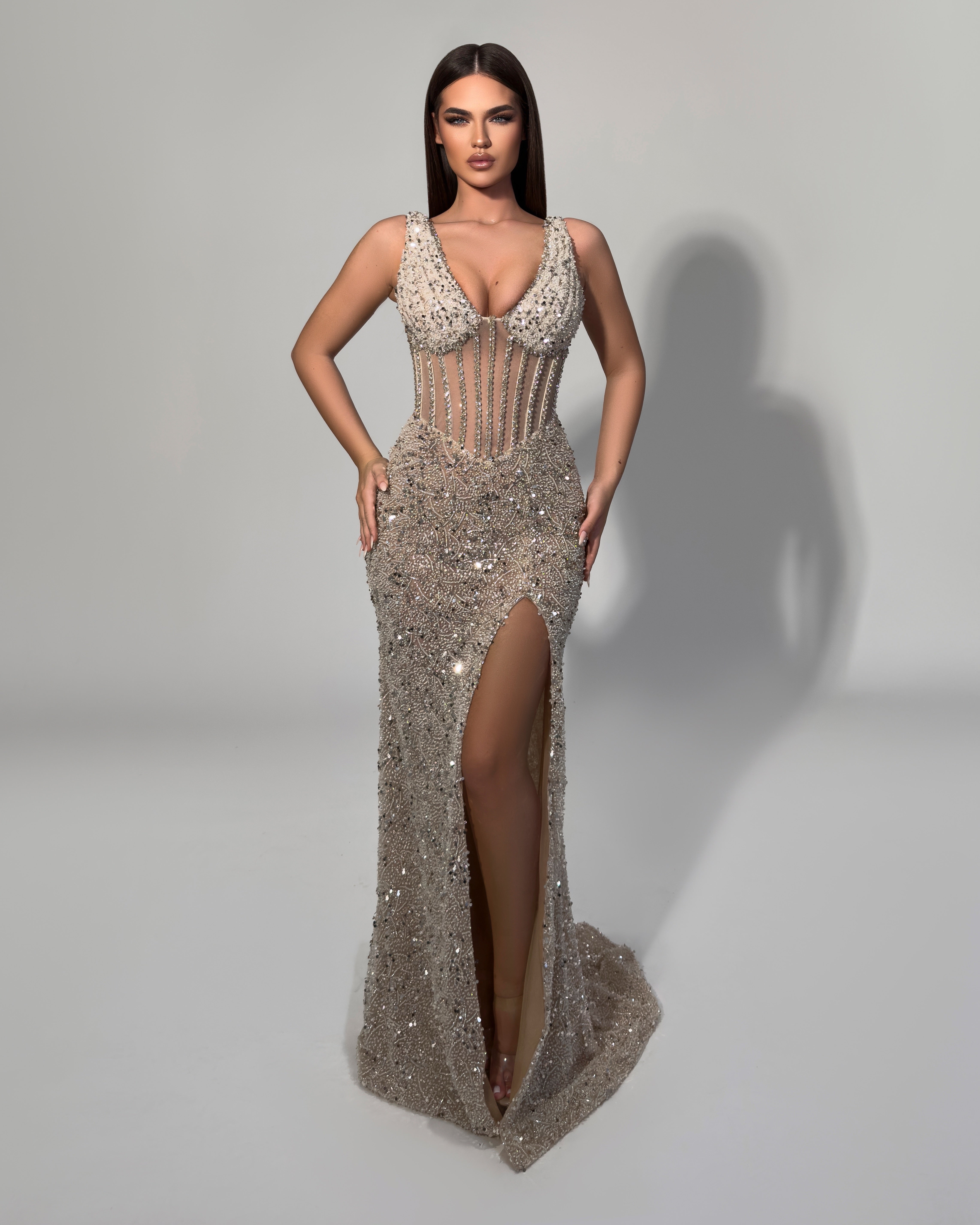 To create your dress with a perfect fit we need your exact body measurements. Please provide the measurements from point 1 to 15. Number 15 should be measured while wearing the heels you plan to wear with the dress. This will allow our team to craft your dress tailored to your shape and ensure a flawless fit.