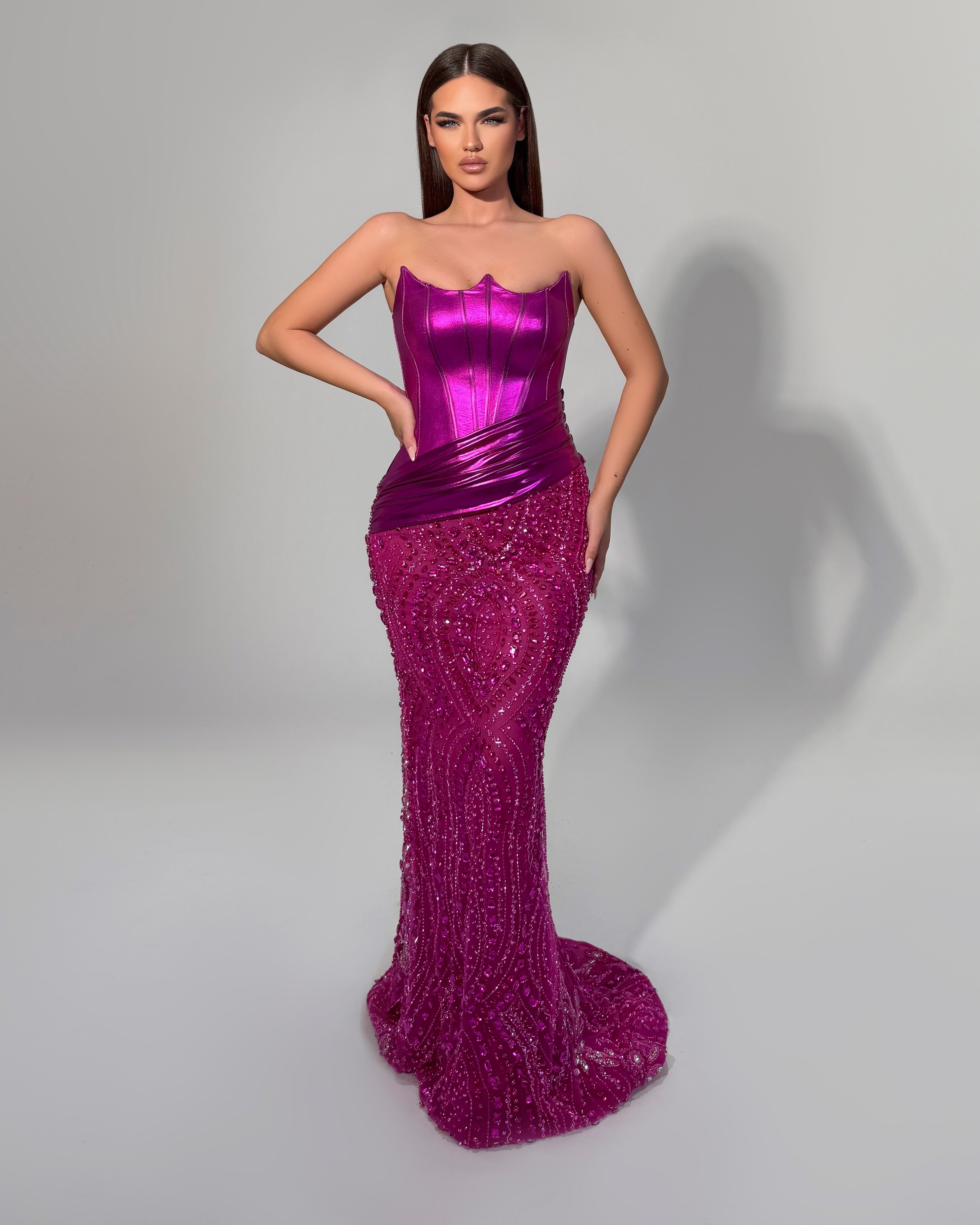 Shiny metallic fuschia corset with crystal detailing