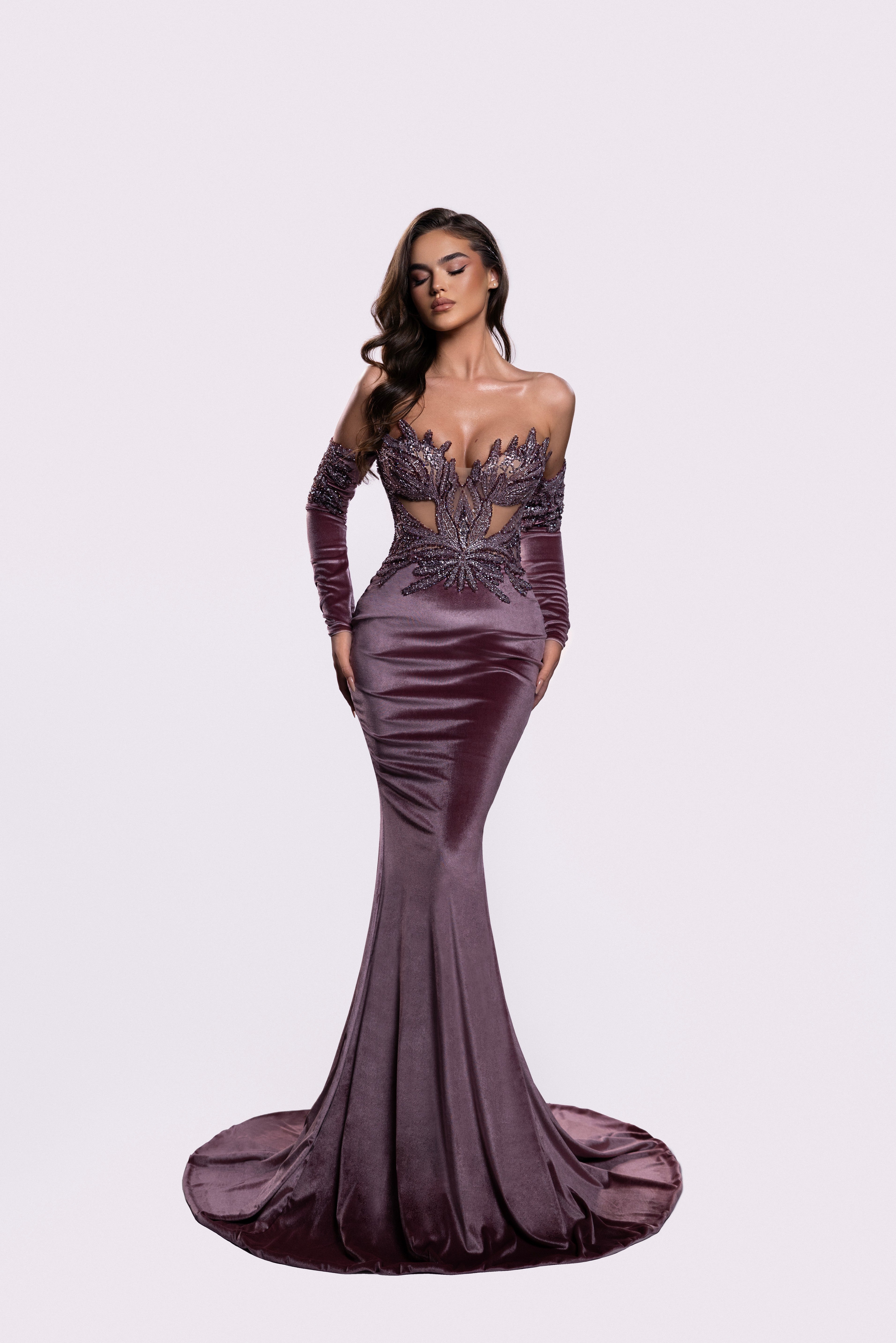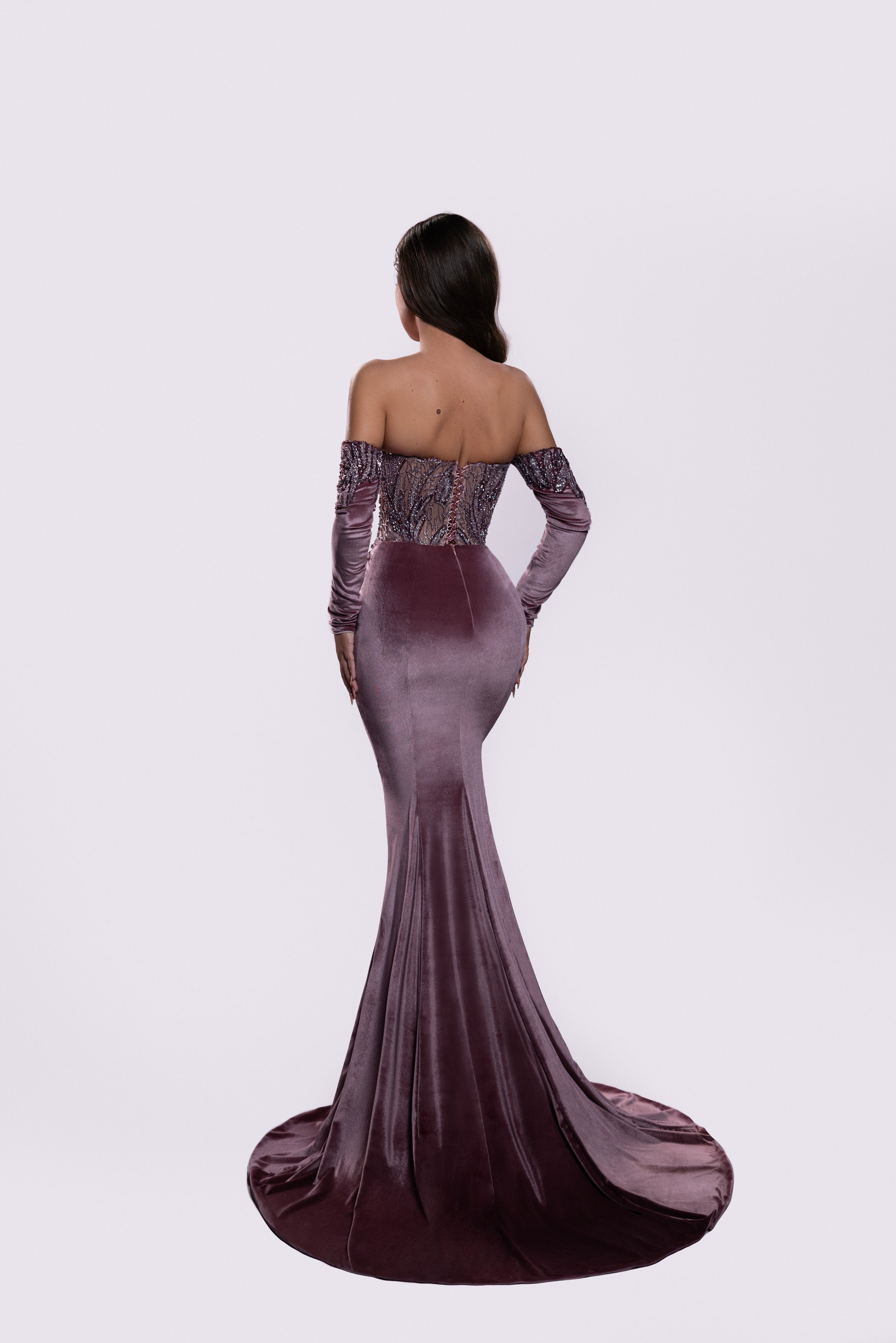 - Fitted velvet silhouette