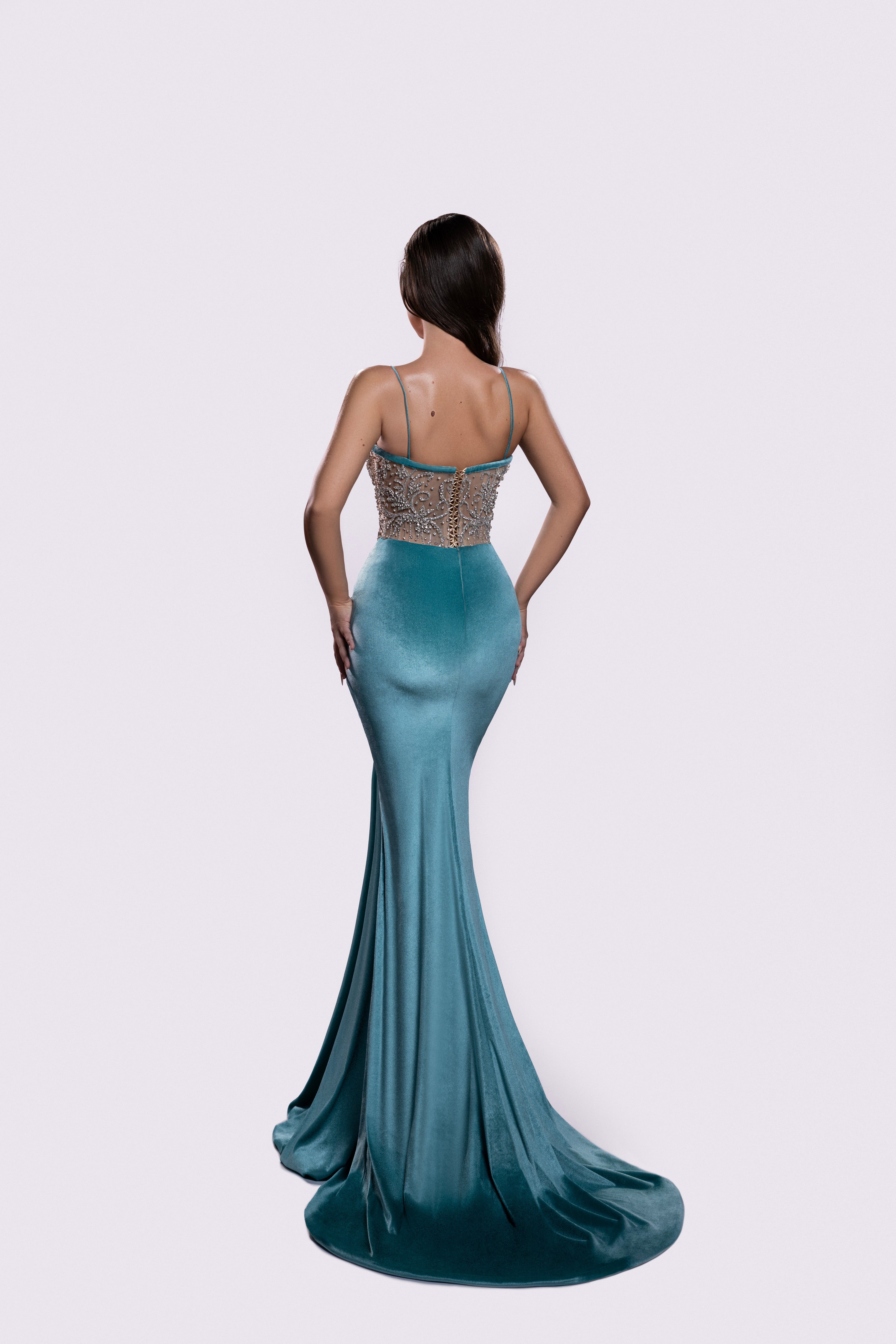 - Sweetheart neckline with thin crystal straps