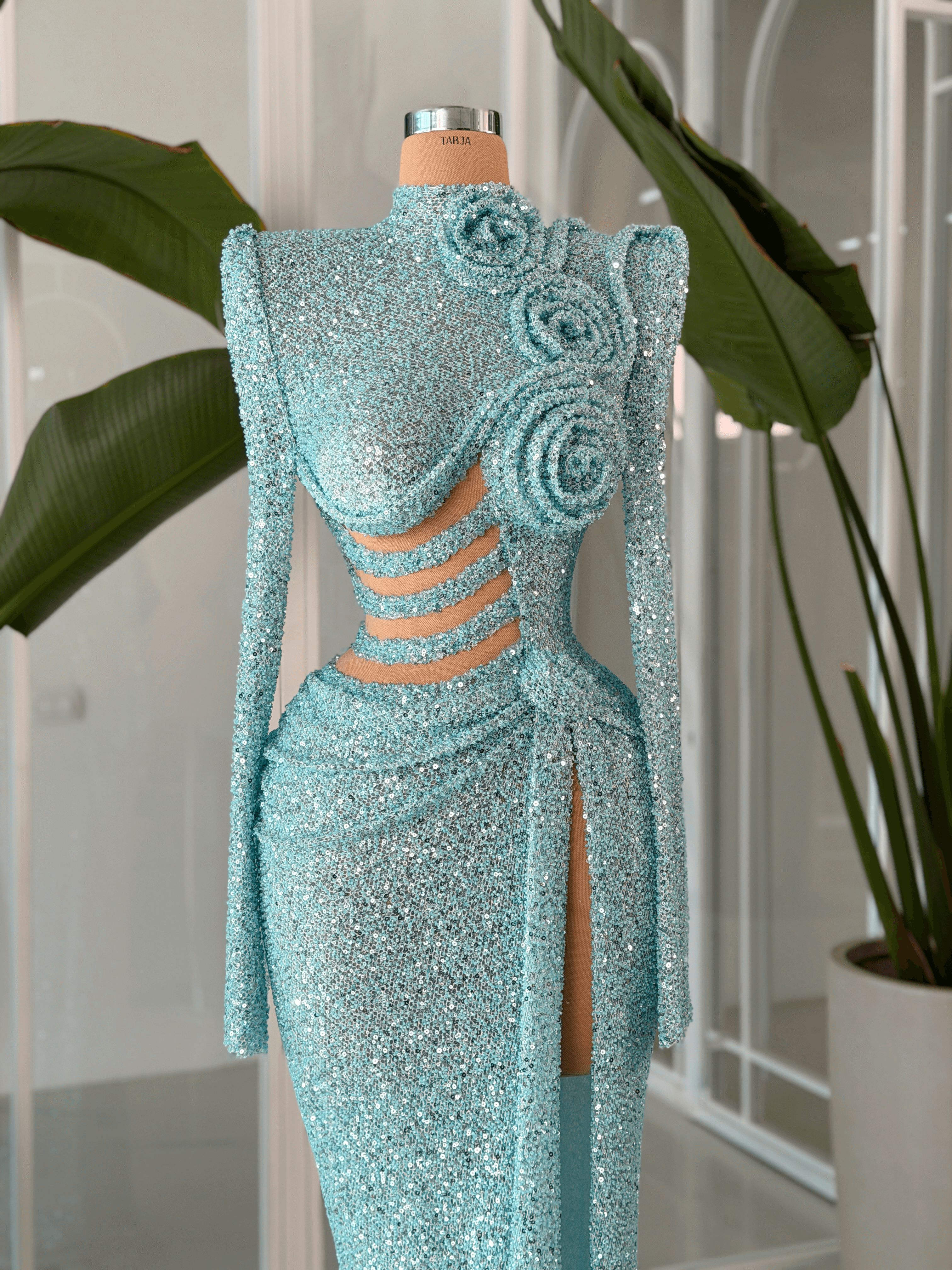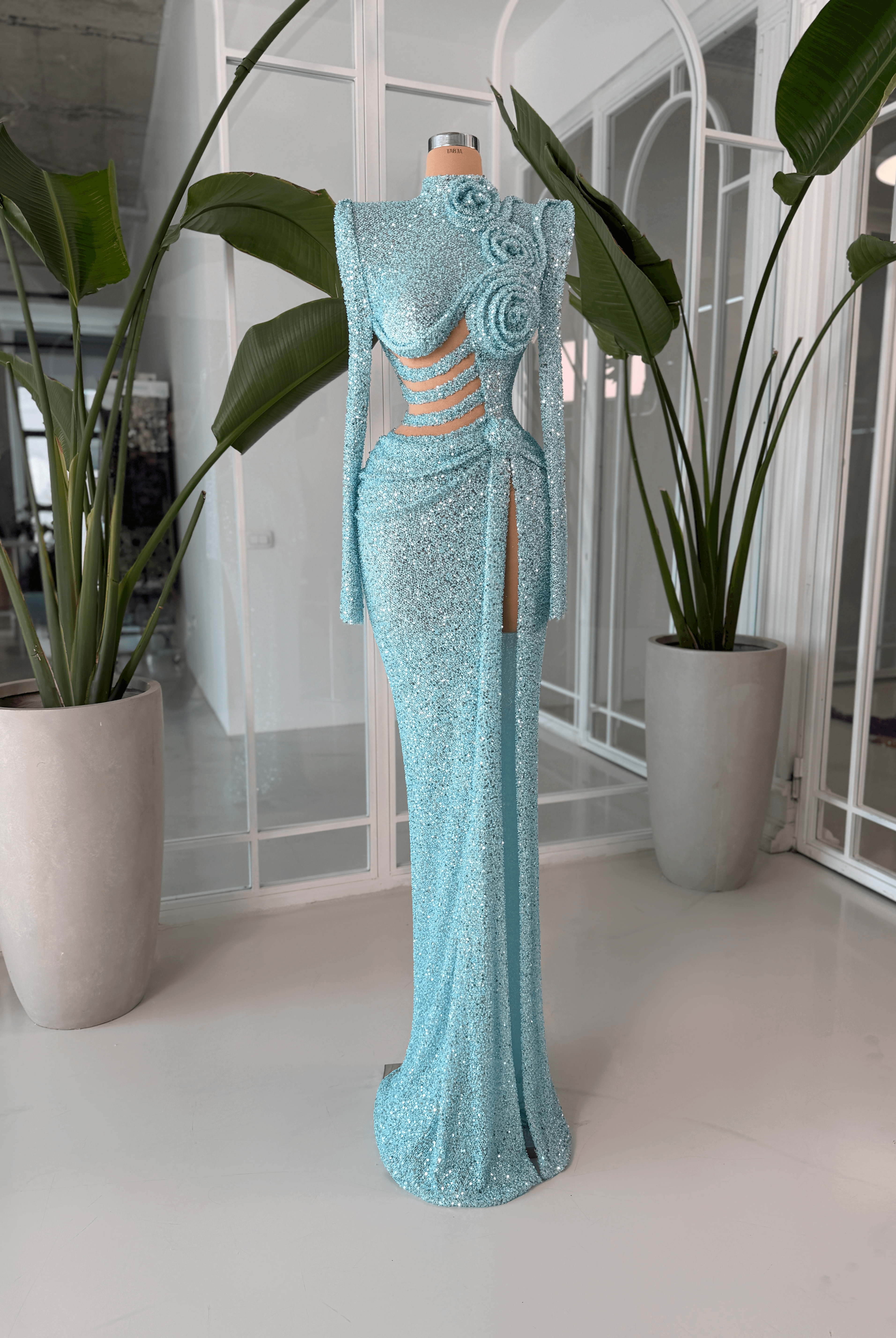 • 3D floral appliqués on shoulders and bodice